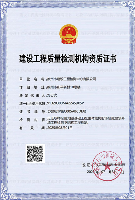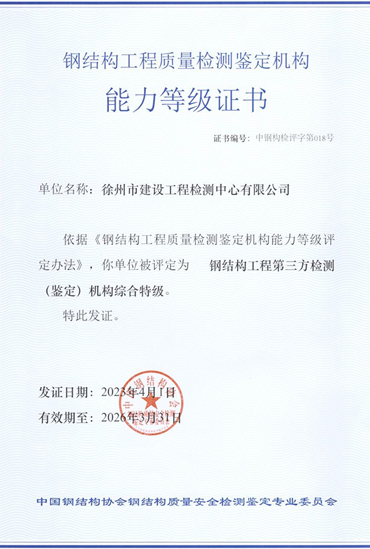 徐州市建設(shè)工程檢測(cè)中心有限公司(以下簡(jiǎn)稱徐建檢測(cè)公司)是徐州市產(chǎn)城發(fā)展集團(tuán)有限公司(以下簡(jiǎn)稱產(chǎn)城集團(tuán))的全資子公司。徐建檢測(cè)公司前身為徐州市建設(shè)工程檢測(cè)中心,2018年事轉(zhuǎn)企改制,2020年4月,完成轉(zhuǎn)企改制資產(chǎn)劃轉(zhuǎn)工作。 徐建檢測(cè)公司是集檢測(cè)、檢驗(yàn)、鑒定、咨詢等技術(shù)服務(wù)為一體、具有獨(dú)立法人資質(zhì)的綜合性第三方服務(wù)機(jī)構(gòu)。公司主要從事建設(shè)工程領(lǐng)域相關(guān)工程質(zhì)量檢測(cè)及技術(shù)咨詢服務(wù),業(yè)務(wù)覆蓋地基基礎(chǔ)、建筑材料、建筑結(jié)構(gòu)、鋼結(jié)構(gòu)工程、市政工程、綠色建筑節(jié)能工程、建筑安全與施工設(shè)備、建筑防水、建筑水電、裝飾裝修、建筑物防雷、室內(nèi)環(huán)境、房屋安全鑒定、城市軌道交通工程等專業(yè)領(lǐng)域。......